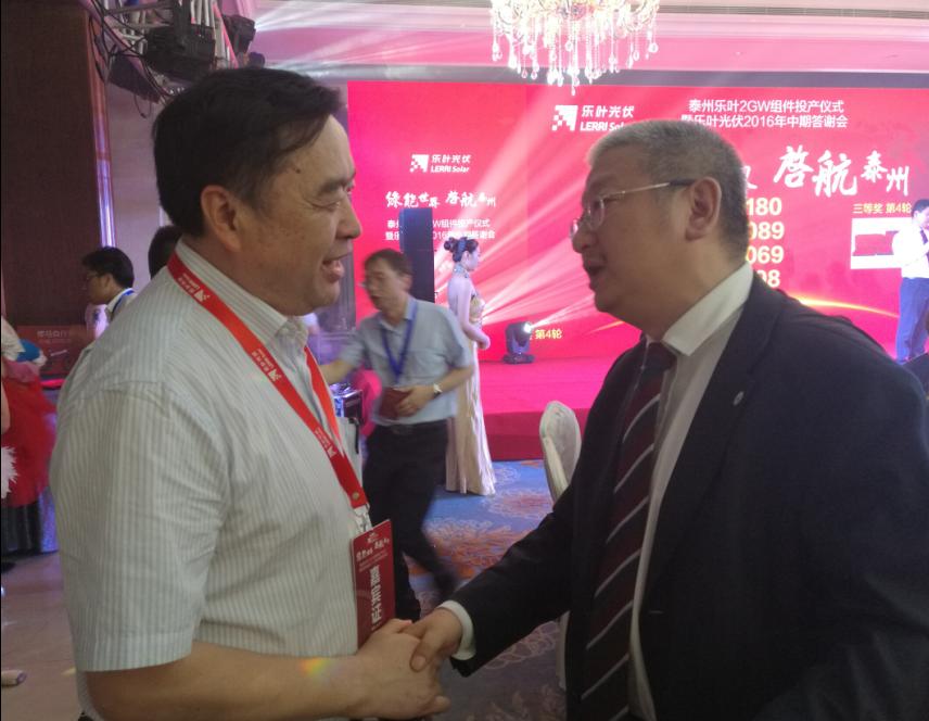 赵振元同志与乐叶光伏董事长李文学在庆典午宴上亲切交流