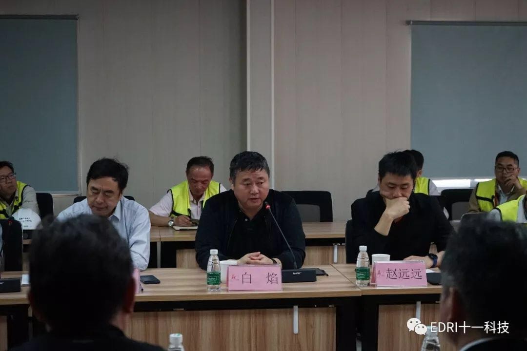 在总包联合体的引导下,张素心、陈剑波、唐均君、赵振元、白焰等同志到F1洁净室、V1变电站、C1动力厂房进行参观,并听取了联合体总包单位及相关分包单位的汇报。